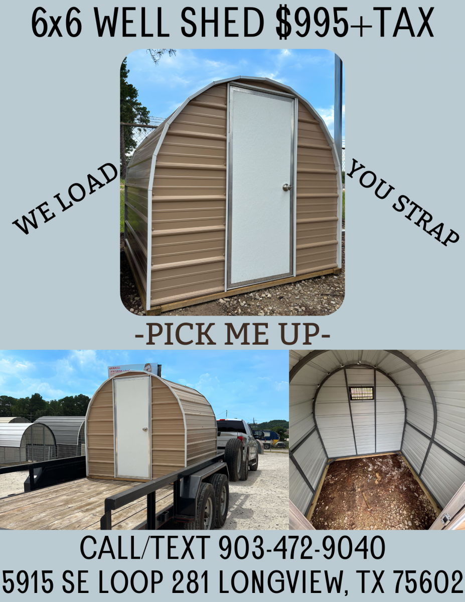 Come by and let us load one of our Well Sheds onto your trailer today. You strap it down and take it to your location.